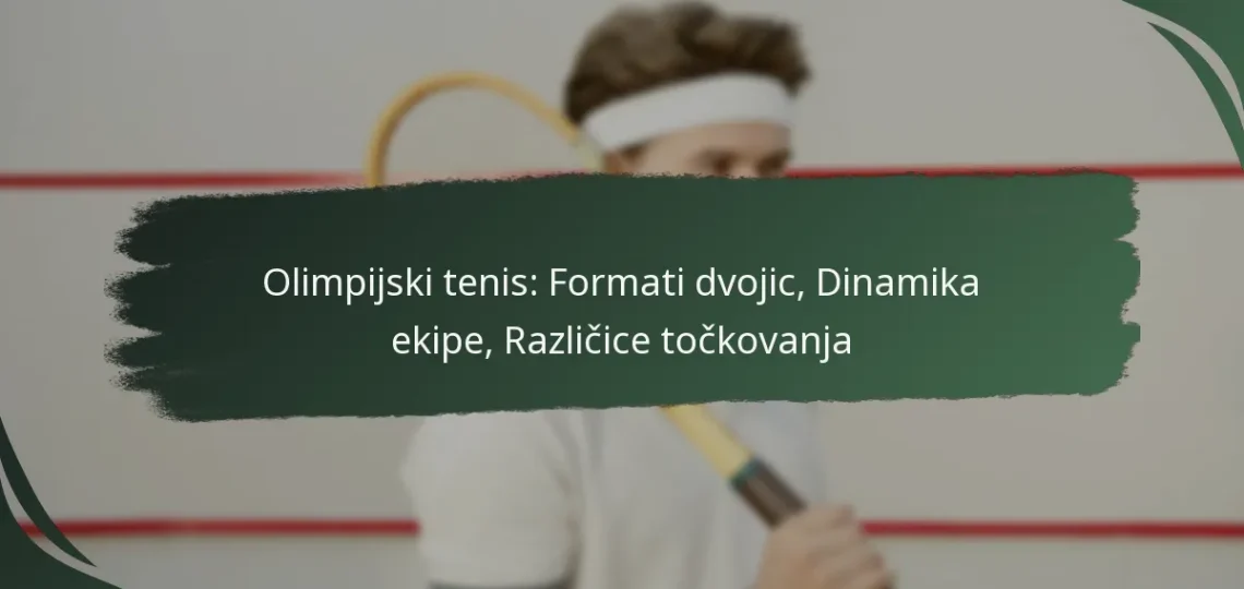 V olimpijskem tenisu se dvoboji v dvojicah večinoma igrajo v formatu najboljših treh nizov, kar poudarja pomen timskega dela in strategije. Dinamika med partnerjema, vključno z zaupanjem in komunikacijo, je ključna za uspeh, saj lahko močno vpliva na predstavo. Poleg tega različne točkovne variante, kot je sistem brez prednosti in specifična pravila za tiebreak, uvajajo edinstvene izzive, ki vplivajo na strategije in izide dvobojev.