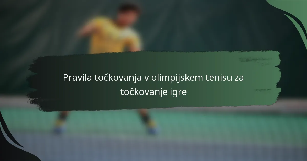 Scenariji točkovanja v olimpijskem tenisu so prikazani skozi strukturiran sistem, ki vključuje točke, igre, nize in tekme. Razumevanje teh scenarijev je bistvenega pomena za spremljanje napredovanja tekme in različnih izidov, ki se lahko pojavijo med igro.