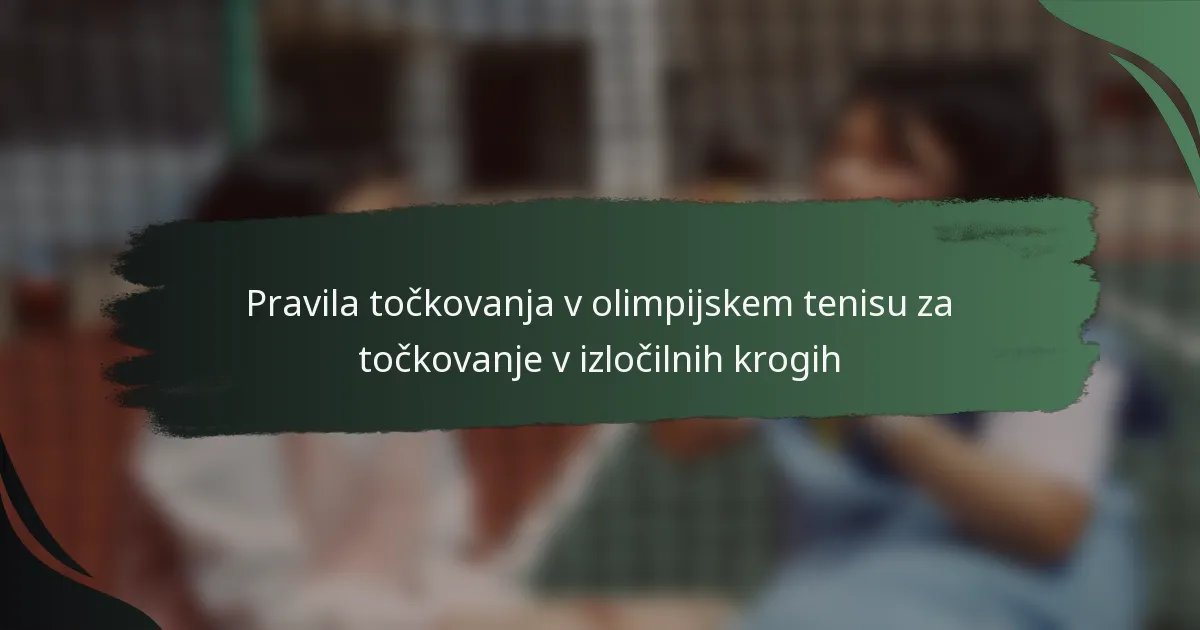 Pravila točkovanja v olimpijskem tenisu za izločilne kroge so zasnovana tako, da ustvarijo konkurenčne in razburljive tekme, pri čemer se uporablja format najboljših treh nizov. Igralci morajo zmagati v šestih igrah, da osvojijo niz, pri čemer se pri izenačenju na šest igrah izvede tiebreak, kar poudarja tako spretnost kot vzdržljivost. Ta edinstvena struktura, ki se razlikuje od tradicionalnih turnirjev, poudarja intenzivnost igre na izločanje, kar je ključno za razumevanje dinamike točkovanja tako igralcev kot navijačev.