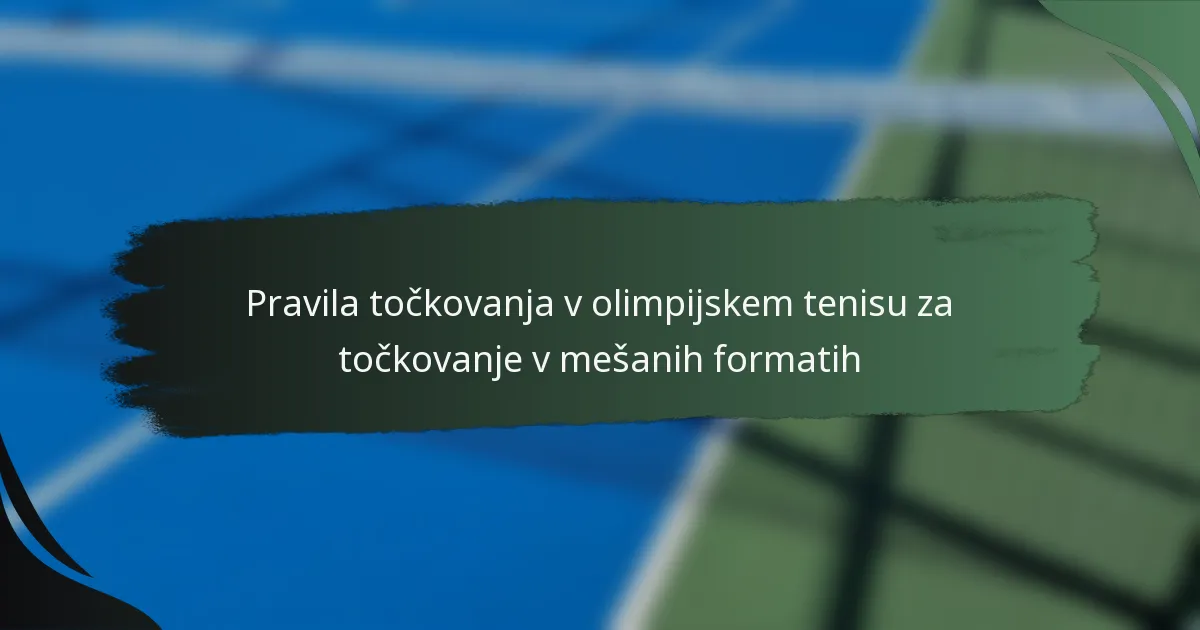 Olimpijska pravila točkovanja v tenisu za mešane formate, zlasti v mešanih dvojicah, uvajajo edinstveno mešanico tradicionalnega teniškega točkovanja z prilagoditvami, primernimi za olimpijski kontekst. V tem formatu ekipe sestavljajo en moški in ena ženska igralka, sistem točkovanja pa vključuje posebne predpise za točke, igre in nize, ki izboljšujejo konkurenčno izkušnjo. Igralci se morajo spoprijeti z edinstvenimi odtenki točkovanja in dinamiko timskega dela, kar lahko vpliva tako na trajanje tekme kot na izide.