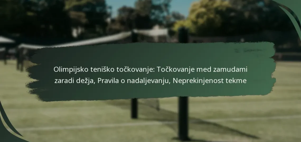 Kontinuiteta tekem v olimpijskem tenisu se ohranja skozi ustaljene postopke, ki se ukvarjajo s točkovanjem med zamudami zaradi dežja, pravili za nadaljevanje in vlogami uradnikov. Ti protokoli zagotavljajo poštenost in jasno komunikacijo za igralce in gledalce, kar omogoča, da se tekme gladko nadaljujejo po prekinitvah.